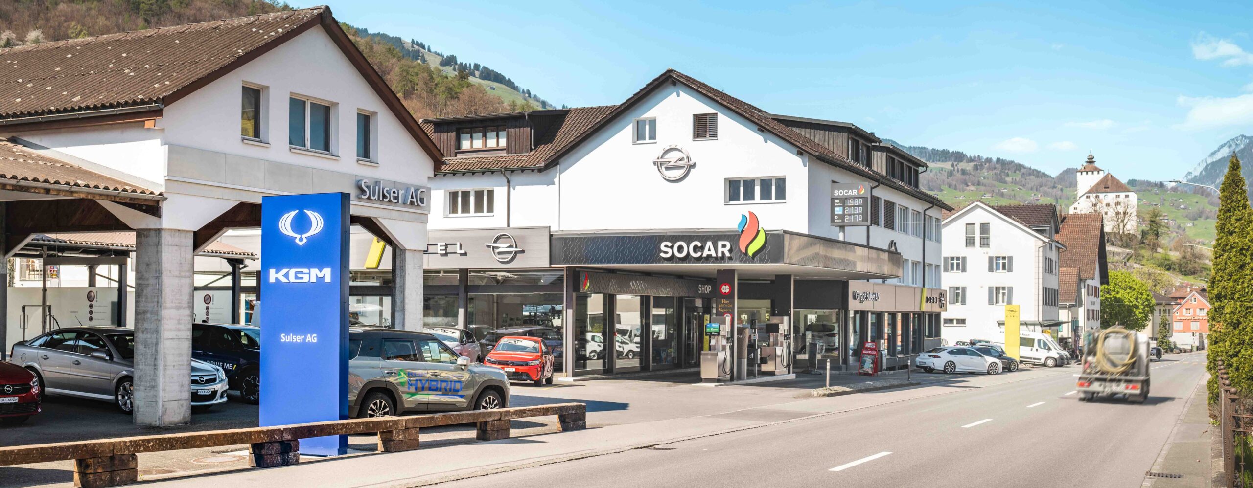 SOCAR-Tankstelle (Benzin 95 / 98, Diesel und 2-Takt), Shop mit Vignettenverkauf für Schweiz I Österreich